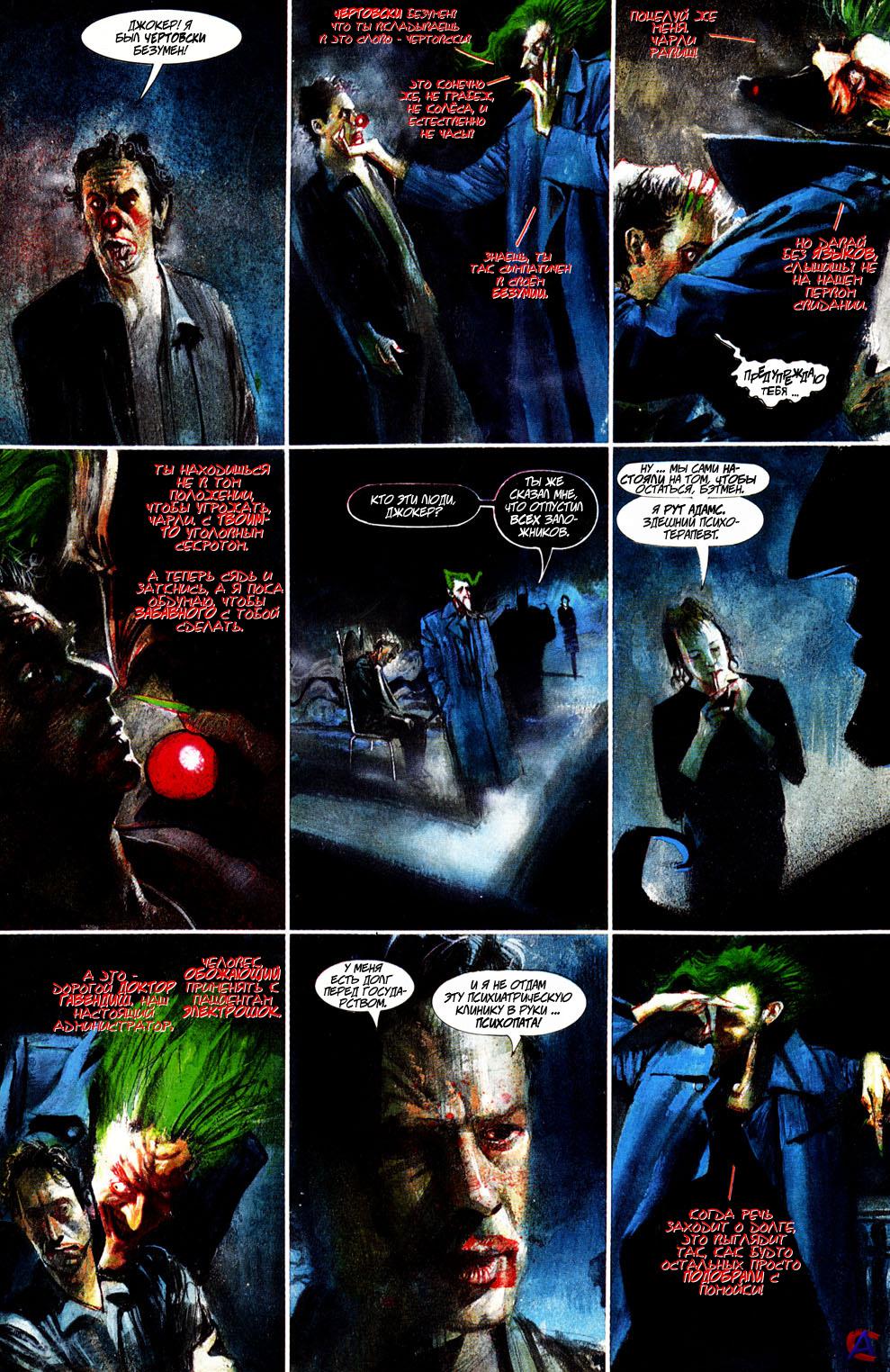 07.12.12 Мы рады сообщить, что при нашем активном участии издательская группа "Азбука-Аттикус" лицензировала для издания на русском языке 7 шедевров от издательства DC Comics: Алан Мур. Хранители (WATCHMEN) (коллекционное "абсолютное" издание) Алан Мур. V значит вендетта (V FOR VENDETTA) (коллекционное "абсолютное" издание) Нил Гейман. Абсолютная Смерть (ABSOLUTE DEATH) (коллекционное "абсолютное" издание) Нил Гейман. Книги магии. (BOOKS OF MAGIC) BATMAN: HUSH (2 книги в одной) BATMAN: ARKHAM ASYLUM (15th Anniversary Edition) SUPERMAN: EARTH ONE. Книга 1 Все издания будут в твердом переплете, в оригинальном формате (или максимально приближенном к нему с учетом российских стандартов), на мелованной бумаге, с подробными комментариями. Следите за новостями: скоро опубликуем план выхода! Кто как, а я ожидаю в нетерпении.) У Аркхэм Асайлума довольно сюрреалистическое видение Бэт-вселенной, но меня зацепило. Такой Ватман явно не станет доставлять Джокера в полицию целым и невредимым. ![]() http://magnetida.ru/magneto/module/a...1249780748.jpg |